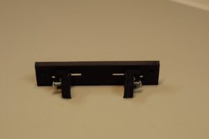In de sleuven steken boutjes die de klemmen vast zetten.