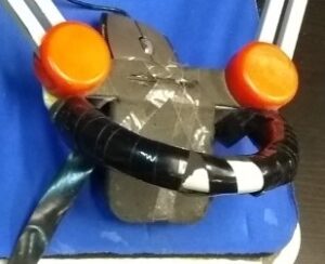 Een ander probleem was dat de bekleding van het handvat waarmee de muis bewogen wordt begon te verslijten. We hebben de oude bekleding verwijderd en vervangen door griptape voor tennisrackets.